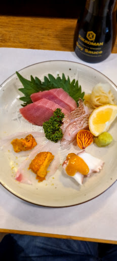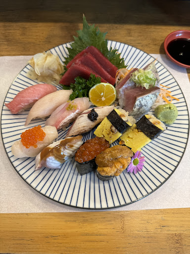Read moreO ambiente não favorece, pela proposta de peixes frescos e cortes diferentes e pelo altíssimo preço, acho que não combina ficar ali no mercado, não te envolve uma experiência que acredito q deveria ser pelo preço (novamente). Atendimento um pouco confuso, com nossa mesa foi tudo ok pq chegamos cedo mas vi outras mesas chamando sem serem atendidas, garçons pedindo para esperar pq tinham q fazer outra coisa. Pedimos pratos quentes, o teppanyaki de salmão estava saboroso, já o Tonkatsu não nos chamou a atenção. Tb pedimos uma dupla de niguiri de atum (que não vi diferença de outros restaurantes) e um sushi de salmão (esse sim achei o peixe fresco). Os pratos quentes são muito bem servidos, da para pedir um e dividir e pegar uns sushis extras para experimentar (quem tiver o desejo de experimentar e come uma quantidade normal rs...). Chateou o fato do wasabi parecer ser aquele de pó e não o em pasta tradicional e darem balinha de yogurte ao invés de uma balinha japonesa na conta que deu quase R$300 para 2 pessoas com 2 pratos + 4 sushis + 2 refris. Gostaria de experimentar mais os sushis mas infelizmente não é pro meu cacife, 15 peças em...