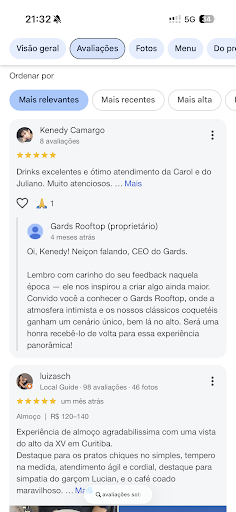Que experiência ruim que tive nesse dia. Cliente do Gards desde o antigo bar, onde o atendimento sempre foi impecável. Desde de a chegada no local a experiência foi de mal a pior. Na recepção já fui questionado pela moça se havia feito reserva pois não haviam mesas (sim, estava feita e foi cobrado valor pela reserva) Perguntou por onde havia feito a reserva e falou que estaria cheio e que teria que aguardar pois no meu horário AGENDADO não teria mesa. Subi, esperei mais de 30 minutos para que liberasse uma mesa. Quando FINALMENTE, conseguimos a mesa, com todo o atraso. O garçom passou pela mesa 3 vezes ignorando completamente nossos chamados, os quais ele ouviu e viu todos. Veio então um outro garçom do bar, que viu que já havíamos sido ignorados a um tempo E vendo a situação desconfortável veio atender. Após todos os pedidos realizados pelo outro garçom. O responsável pela nossa mesa (um alto, com cabelos grisalhos e sem barba) veio verificar se a mesa estava bem. Informei que já havíamos sido atendidos e que agora já havia outro garçom, ele de forma debochada disse “é, tenho várias mesas para atender, vi chamarem e uma hora eu viria”. Atendimento nota zero, adoro os drinks e o local, e sempre teve um ótimo atendimento, mas essa experiência realmente me deixou desconfortável e eu estava levando um amor para aniversário, o transtorno do tempo deixou ainda mais chata a situação. Enfim, uma experiência desastrosas para amigos em um bar que insisti que fôssemos pois era...