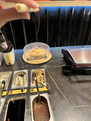 Mas a comida parada no buffet é péssima, a vina não tem sal, os molhos estavam todos sujos, alguns até com cara de vencido/ passado. O pao é super doce, parece um pão de leite grande, as frituras e frango desfiado disponíveis estavam muito velhos e a gordura dos fritos muito velha e passada. As saladas como milho, conservas essa coisas estavam ok, mas as carnes e o cheddar me deu até medo por saúde mesmo ...