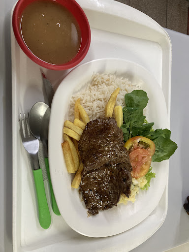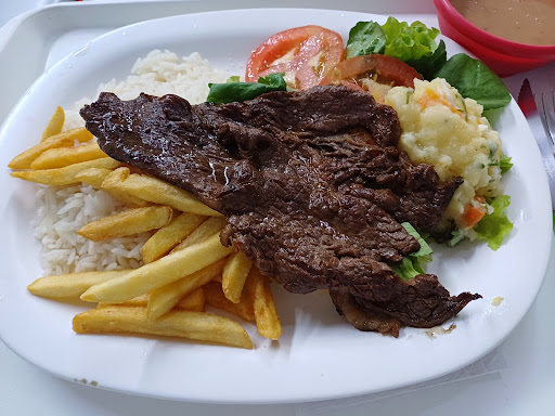 Pedi um prato de bife R$ 24,00 que acompanha arroz, uma maionese de batatas perfeita, batata frita e salada de rúcula, alface e tomate. O feijão é cobrado à parte no valor de R$1,50. Estava super saboroso o feijão, com gostinho de refogado na hora, e o bife bem temperado e arroz super soltinho.