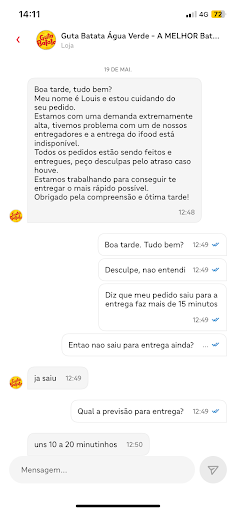 Duas vezes recebi o pedido errado (e óbvio, mandaram batatas mais baratas do que eu havia pedido). Antes de consumir reclamei via Ifood e via Whatsapp, mas apenas recusaram a contestação e sequer me responderam!