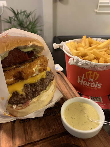 Que delícia de lanche!!! Melhor sanduíche e batata que comi. Batata sequinha, cheedar de ótima qualidade e bacon bem sequinho e crocante. Você come a batata com cheedar e bacon até o final do balde, não tem só em cima. O sanduíche é maravilhoso!! É bem grande e saboroso!!! Tudo muito bem preparado e de excelente qualidade!! Uma ótima pedida é a sobremesa, pedimos de paçoca com doce de leite!! É uma delícia, não fica atrás de muitas sobremesas que já comi e em lugares conhecidos em Curitiba. O atendimento é excepcional, são super educados e atenciosos!! Quem tiver oportunidade de dar um pulo em São José dos Pinhais, ou estiver passando por lá, vale super a pena comer nos Heróis do Hambúrguer. Ou quem morar em Sjp melhor ainda. Eles trabalham mais com pedidos e retirada, mas tem um espaço para consumo no...