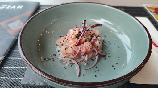Optamos pelo combo que continha entre os itens sushis com fois gras, vieiras e uns peixes que não tínhamos ouvido nem falar. Pela vontade grande de provar coisas novas, escolhemos esse combo. Minutos mais tarde veio a proprietária/ gerente dizer que esse combo tinha algumas peças faltando, justamente dos itens diferentes, os mais caros. Aí ficou certa impressão estranha de que por termos vindo pelo aplicativo de descontos os itens mais caros não estavam disponíveis, mas ela foi bem cortês em deixar escolhermos outros itens no lugar dos sushis que levavam os ingredientes que faltavam e forneceu de cortesia um ceviche para cada. Confesso que fiquei um pouco desapontado por não poder provar esses ingredientes diferentes que só vi em masterchef hahaha, aí foi melhor pedir por outro combinado, sem maiores problemas.