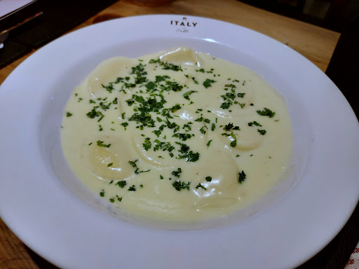 Estive no Italy caffe Juveve em 10/05/2025. Lugar, agradavel com decoração bem convidativa e puxando para uma cantina italiana. Atendimento, vou falar em relação ao garçam que nos atendeu. Foi muito atencioso, cordial e sempre atento. Pratos: Pedimos dois pratos: - Frango à Parmeggiana, empanado e gratinado com sugo e muçarela, acompanhado de fetuccine 3 queijos - Spaghetti polpettine (almôndegas) de carne ao molho rústico de tomates e ervas frescas As carnes de ambos não tinham muito tempero, mas isso é algo muito pessoal. Agora vamos as massas de ambos os pratos, que era impossivel pensar em querer fazer aquela tradicional enrolada da massa no garfo, porque simplesmente veio toda quebrada. Tentamos pescar um fio de macarrão que estivesse inteiro, mas era dificil e olhando as mesas ao lado vi algumas pessoas com o mesma sintoma. O molho ao sugo, realmente era com tomate, porque tinham grandes pedaços, parecendo aqueles de tomates pelados enlatados de supermercado, onde o gosto parecia de molho pronto. Mas era para ser um molho rustico com ervas. Fui o local, com a intenção depois do almoço de tomar um café e comer algo doce. Mas em um Italy Caffe depois de ver o que a pessoa fez com a massa, imagino que seria capas de qualquer coisa. Chamei o garçom, mostrei o fato. Ele até perguntou se queria trocar o prato, mas como disse, a ocorrencia não era somente na minha mesa, dai imagino a raiva da pessoa da cozinha. Comemos do jeito que estava, paguei a conta e fomos embora. Talvez a minha expectativa fosse alta, mas sinceramente nem em casa quando quero cozinhar rapido eu faço isso com a massa.