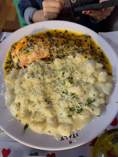 Read moreEstivemos no Italy Caffé no dia dos namorados (12/06/24). Fizemos uma reserva para 21h. Chegamos às 20:30 e já pudemos entrar. Sentamos no segundo andar, em uma mesa para apenas duas pessoas. O atendimento foi bom, logo que sentamos já trouxeram o cardápio. Ha bastante variedade de pratos, massas, saladas, além, claro, de cafés. A maioria dos pratos de massa + carne/frango/peixe custam entre 40 e 70 reais em média. Os pratos são muito bem servidos, tanto na quantidade de carne como na quantidade de massa, conforme é possível notar nas fotos em anexo. Confesso que o ambiente não é tão legal, pois é tudo muito pequeno e apertado. A sede do juvevê, nesse sentido, é bem melhor. Outro ponto um pouco chato é o banheiro. Se precisar ir ao banheiro, precisa pegar uma chave com um chaveiro de galinha de borracha de tamanho médio e ir até o banheiro que fica do lado de fora do restaurante, ao final do corredor. Além do acesso ruim, achei meio estranho sair do restaurante com uma chave com chaveiro de galinha, então recomendo a substituição por algo mais discreto, ao menos. Tirando esses detalhes, o restaurante é muito bom. A refeição estava gostosa, mas confesso que não gostei tanto de molho de três queijos, pois ele é bem suave e lembra muito um molho branco. Mas é gostoso, especialmente com a combinação da proteína. O pagamento é feito no caixa com a entrega de uma fichinha numérica, e eles não trazem a conta na mesa. O restaurante não conta com estacionamento próprio, então as opções são deixar na rua ou em um estacionamento particular logo ao lado, que fecha 22h. Recomendo o restaurante, pois tem bom custo benefício, apesar de ter seus defeitos, ao menos sob a minha...