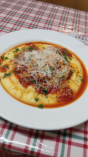 Toda a experiência no Italy foi desagradável. Começando pelo atendimento, que é demorado e bagunçado. Claramente o staff não é suficiente para dar conta do horário de pico do almoço, mesmo sendo uma quarta-feira. Tivemos que pedir nossas bebidas 2x, pq esqueceram, na segunda vez ainda veio errado, então tivemos que esperar novamente. Os copos com limão e gelo são deixados prontos em quantidade, então quando ele chega na sua mesa metade do gelo no fundo já virou água. Meu suco demorou tanto (uns 20 min), que num dia de calor intenso como hoje, me fez chamar o atendimento e pedir uma água. A água chegou junto com o suco! Estava com expectativas pelo risotto de alho-poró, por ser um restaurante que se identifica como italiano e tinha boas reviews sobre os pratos. Levou quase 40 min para chegar, sendo que era o prato do dia do almoço. A próxima decepção foi notar que o risotto não recebe o preparo autêntico do prato, o arroz usado é arroz comum, em vez de um arroz arbóreo ou cateto por exemplo. Estava sem sal, ralo e veio um único pedacinho de alho-poró, nem mesmo o sabor desse tempero estava presente. Ainda com esperanças, resolvi pedir uma sobremesa, a profiterólis. O gelato da casa (que custa o mesmo preço que um Bacio de Latte, por comparação) é um sorvete comum que parece de pote de 2 litros de supermercado. O profiterólis veio mole, encharcado, e a calda de chocolate é rala e parece aguada. O restaurante também não tem banheiros, então se você quiser lavar as mãos vc precisa pedir a chave no caixa e entrar na galeria ao lado para usar o lavabo do prédio. No piso superior onde sentamos é absurdamente calor, o teto não tem forro, as mesas são apertadas demais umas nas outras e o barulho é insuportável. Tudo isso pelo valor que você pagaria para comer em um restaurante de um bom padrão. O prato do dia foi 29.90, as opções de almoço do cardápio vão desse valor até a faixa de 50 e poucos a 60 e poucos reais no prato individual. Enfim, era um restaurante que eu passava em frente e via a fila na porta, então sempre tive vontade de experimentar, mas infelizmente nunca mais volto lá e só recomendo para quem gosta de passar raiva.