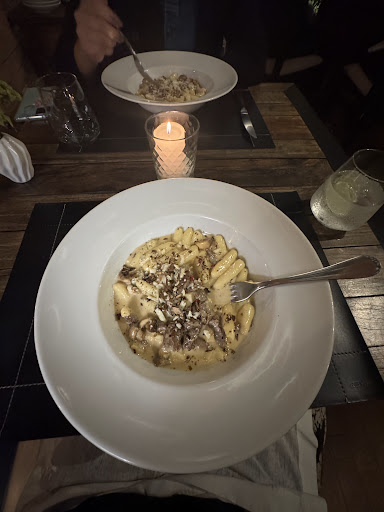 Um dos melhores restaurante que conheci em Curitiba e certamente um dos melhores que já tive o prazer de estar. A começar pelo belo e agradável ambiente. Se for, escolha uma mesa no terraço. Se não tiver, não tem problema, pois o ambiente interno também é muito agradável. A excelente experiência começou com a reserva: fui muito bem atendido pela Jamile. No local, fomos muito bem recepcionados e tivemos o prazer de contar com o atencioso serviço do garçom (infelizmente não me lembro do nome dele). As mesas são bem decoradas e os serviços são de muito bom gosto. No terraço (que é climatizado e coberto), as cadeiras contam com mantas confortáveis e aconchegantes. Há um lugar externo especial para os fumantes. O staff é perfeito. Sabem te atender na medida. Nem mais, nem menos! A carta de vinhos é excelente. O menu é variado, contando com entradas deliciosas, massas, risotos, peixes e frutos do mar, carnes e sobremesa. As Ostras gratinadas e o Mulles et frites são excelentes para a entrada. O Linguini Mar e Terra estava perfeito como prato principal e as Frutas Flambadas de sobremesa fechou com chave de ouro.