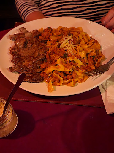 Porém o garçom que de fato nos atendeu, foi mal educado em diversas vezes, quando estávamos falando do nada simplesmente virava as costas, ok pedimos nossos pratos, eu pedi um: 5351 - ENTRECOT ALLA FONDUTA DI FORMAGGIO e minha esposa pediu o: 5360 - CARRÉ DE CORDEIRO