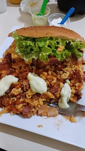Read moreAmbiente simples mais justo ao produto. experiência ruim no atendimento onde fiquei 5 min esperando na mesa e ninguém veio atender. Tive que ir ao balcão. Demoraram muito pra fazer os lanches, claramente priorizam o Ifood ao cliente presencial. Produto razoável mas pelo preço é justo. Não espere um bom hambúrguer, apenas estes comprados nos hipermercados que claramente não parecem ser...