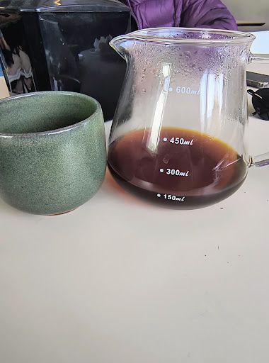 A entrada já nos disse muito. Uma recepção atenciosa, onde cada palavra parecia feita à mão, como os pães. Nos explicaram sobre os ingredientes, sobre o cuidado na escolha dos insumos e — com brilho nos olhos — nos ofereceram o coado do dia. Um café especial, de grãos vindos do Espírito Santo, com perfil frutado e notas que flertavam com maple syrup e um quê de Herval — palavras que mais pareciam poesia do paladar do que descrição técnica.