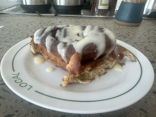 Sentamos próximos à vitrine, observando a dança silenciosa dos baristas, o cuidado com cada pedido, a leveza de quem cozinha com propósito. A Local não é só uma padaria: é um lugar onde o tempo se dobra, onde pão vira afeto e o café, poesia líquida.