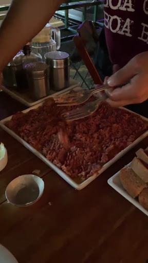 Read moreEstão de parabéns pela qualidade da comida, realmente tudo bem gostoso. A carne de onça realmente é muito boa. O lugar é muito agradável e bonito. Por outro lado, ficamos muito decepcionados com o serviço: poucas vezes vi tantos erros acumulados. 40 minutos para entregar uma porção de salsichas com mostarda; Pedimos um pão com bolinho junto com as salsichas: não veio; comentamos sobre a demora e nada foi feito; passou-se uma hora; depois descobrimos que o pedido não tinha sido feito e, quando constataram, fizeram o pedido; seriam mais 30 minutos - tivemos que perguntar quanto tempo seria- para entregar e pedimos para cancelar; ainda assim vieram nos perguntar depois de 20 minutos se tínhamos desistido mesmo; por último: ainda veio o valor na comanda e tivemos que pedir para tirar; Obs: A carne de onça veio num tempo razoável - 30 minutos- logo após já termos conversado sobre a questão do tempo por conta do pão com bolinho. O que mais me assustou foi que tinha uma quantidade grande de funcionários e a casa nem estava tão cheia. Já trabalhei de garçom em ambientes muito mais hostis, com uma relação funcionários/clientes pior, mais cheios e que tinham um funcionamento muito superior. Uma das garçonetes, que é notavelmente competente, amenizou bastante as coisas,...