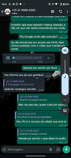 Fiz um pedido de um Marmitex grande, detalhei muito bem o pedido, como mostra o print. O pedido veio todo errado. Pedi com menos arroz e mais feijão, e com caldo, pois sempre vem seco, véi com uma montanha de arroz, quase nada de feijão, e praticamente zero caldo, como mostra no vídeo. Não entendo, por que ter um espaço para observação, onde o cliente diz o que ele quer ou não quer, se este é totalmente ignorado? Uma palhaçada e total descaso com o cliente! Detalhe, sou autista, e tenho hora certa para comer, o pedido foi realizado antes do meio dia, agora são 14:05, não devolveram o dinheiro, não se propuseram a fazer outra marmita, nem tão pouco se propuseram a algum tipo de compensação, já que não poderei mais almoçar, e isso até às 20:00, e...