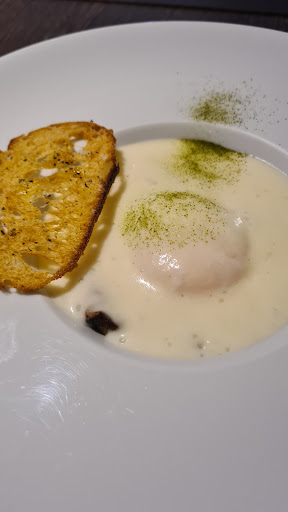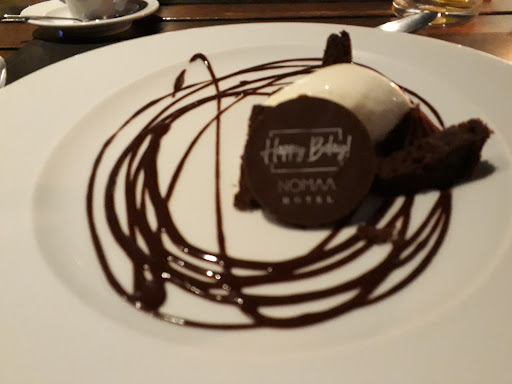 Read moreFizemos reserva por telefone. Usa o mesmo estacionamento do hotel e é pago na recepção do hotel. Toda a arquitetura e decoração é bastante contemporânea e elegante. Ficamos no espaço externo, que é cercado por vidro e fica com um efeito lindo à noite com as plantas e reflexos da luz. Pedimos de entrada guioza de camarão, que vem com 4 unidades e é muito boa, apesar de um pouco picante por conta da páprica. Outra entrada foi a de croquetes, que estavam saborosos, mas poderiam ser servidos mais quentes. Como principal, pedimos peixe do dia, que era pescada amarela e estava simplesmente sensacional em sabor, textura e temperatura. Todos os vegetais estavam perfeitos. O outro principal foi ravióli com cordeiro e segundo meu esposo estava muito bom e poderia ser um prato menor. Sobremesa foi apenas o brownie de aniversário, que estava lindo e saboroso. Adorei toda a experiência. O atendimento foi na medida certa. Atenciososos e simpáticos, sem serem invasivos. Com...