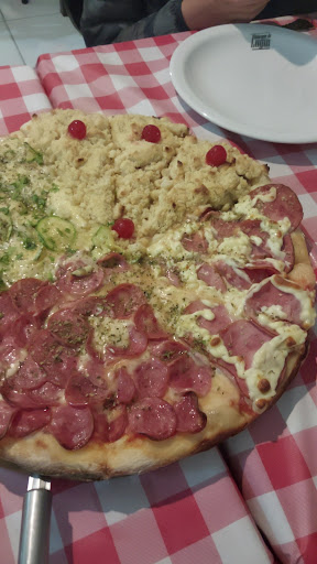 Estamos no local conhecendo o lugar tem um salão com 3 mesas e cada mesa tem seis lugares, pizza saborosa, vale a pena, comer no local onde é preparado. Pedimos uma pizza gigante com quatro sabores para termos a oportunidade de experimentar mais de um sabor do quê está explicitado no cardápio, fomos atendidos, estávamos em 4 pessoas, este mini rodízio de 4 sabores estava muito bom. Já voltamos mais duas vezes. A TV que fica ligada só toca samba,...