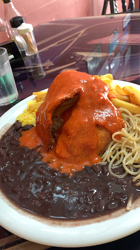A comida e ambiente nada a ver com a propaganda, o local é pra servir somente marmitas mesmo. Fui almoçar e pedi tilápia a parmegiana e veio um prato com macarrão seco, cozido sem temperos, arroz, feijão e dois filés de peixe frito, seco sem molho, aí reclamei...O dono levou pra cozinha e 5 segundos depois veio com uma porção de molho de tomate sobre o peixe, feijão e tudo...comi pq estava com fome e pra não perder o dinheiro...mas deixo uma sugestão, não sou cozinheiro, mas aprecio um fogão e modestamente sei fazer uma boa comida e bem temperada. O prato a parmegiana a carne ou peixe deve ser grelhado, depois de grelhado vai fatias de queijo, um queijo de qualidade e pode cobrar pela qualidade, sobre a carne ou peixe e vai para o forno pra gratinar. O correto é servir o que for a parmegiana separado do prato feito, aí sim...volto lá e levo...