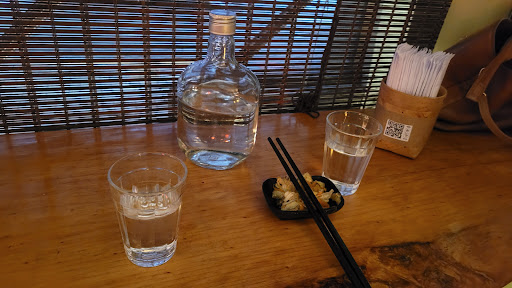 Cheguei cedo, 19h15 e já tinha uma galera. Quando saí vi que tinha fila, então acho que vale chegar cedo ou reservar; Sentei sozinho no balcão mesmo, ar condicionado no talo (bom demais) e cadeira super confortável; O ambiente é maneiro demais (decoração, luzes), descontraído e 'xóvem'. Quem quer muito conforto e silêncio, procura outro lugar, mas vai perder uma comida foda, serviço foda e bar foda; Dito isso, tomei o famigerado drink - que nem vou me arriscar a falar o nome - que vem numa xícara de cerâmica. Bom pra porra. O camarada de cabelo azul com tatuagem do naruto e +2 camaradas no bar estavam com controle total dos pedidos, saindo tudo super rápido e com maior cuidado e zelo com os pedidos; Fui atendido pela Joi(y)ce (foi mal, não sei se é I ou Y). Atendimento 10/10. Super simpática, deu boas sugestões e sempre deu aquele check pra saber se tava tudo no esquema; Comi três entradas: i. camarão com brócolis e amendoim; ii. gyoza e; iii. frango empanado. Todos absurdamente bons. Destaque para o gyoza que tava perfeito - textura, sabor. Veio tudo super rápido, porções bem servidas e apresentação...