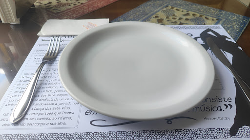 Entrei no lugar e achei ele bonito, bem árabe e tem wifi. Achei interessante a proposta, o horário de atendimento do rodízio é das 11 às 22 o que é um horário bem inovador, entrei no local e estava calor os garçons notaram e ligaram o ventilador o que deixou bem mais fresco o local e comecei bebendo uma bahira de pêssego com pimenta, estava bem refrescante e leve parecendo tônica saborizada, muito bom. Vamos para as pastas com o pão árabe, a coalhada está bem saborosa, mas parece estar um pouco velha, o babaganush estava ótimo e o hommus estava maravilhoso, o pão estava com gosto um pouco de queimado. O kibe cru, com tabule e legumes estava refrescante e muito gostoso, quando é bom não tem melhor, acertei o horário para vir. Vamos para os pratos quentes, o falafel estava divino, dava para sentir o sabor árabe cheio de hortelã e ervas refrescantes e o kibe tinha aquele sabor de carne bem temperada com trigo, sfiha perfeita. Pedi um arak que foi muito bem com o calor, para quem não conhece tem um gosto de vodka com bastante hortelã sem açúcar, para quem já tem o conhecimento do gosto de anis, não recomendo para quem não bebe por que é forte, tem 50% de álcool na composição! O charuto de parreira e de repolho estavam maravilhosos, com bastante especiaria árabe. O arroz com lentilha e cebola, acho que a cebola poderia estar um pouco mais crocante, ela estava meio mole, mas de sabor estava ótimo, o kafta poderia estar um ponto a mais, os michui o de carne estava mais bem passado e o frango passou um ponto a mais, o cordeiro estava sensacional, carne macia que derrete na boca. A abobrinha recheada estava uma delícia, tem gente que fala que legume recheado é coisa que não é mais usada, mas eu adoro. Terminando com a caipirinha tradicional, ela amargou no final, não foi tirado a parte branca do centro do limão. A comida é muito boa, bem árabe mesmo, é um rodízio raro de se encontrar e o leitor não vai encontrar nada parecido com a experiência. Minha nota...