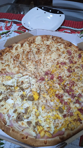 Fizemos o pedido e a pizza chegou em tempo esperado (rapidamente). Pedimos uma pizza gigante de 12 pedaços e comemos em 2 adultos, um adolescente e 2 crianças pequenas. Foi suficiente. A pizza estava ótima. Pedimos calabresa especial, mexicana e frango catupiry. A de calabresa especial é realmente especial (foi dica do garçom, a qual ficamos gratos). A mexicana tem uma picância no ponto que gosto: arde a língua e o céu da boca, mas deixa ainda sentir bem o sabor do recheio da pizza (ressalto que estou acostumado com comida baiana e, por isso, talvez o nível de picância talvez seja forte para quem não é muito acostumado). A de frango com catupiry foi pedido de uma das crianças e como não sou muito fã, prefiro não comentar.