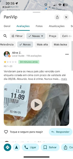 Read moreVenderam para os meus pais pão vencido com etiqueta colada em cima com prazo de validade até dia 05/08. Absurdo. Isso é crime. Nunca mais pisamos aí. É desse jeito que...