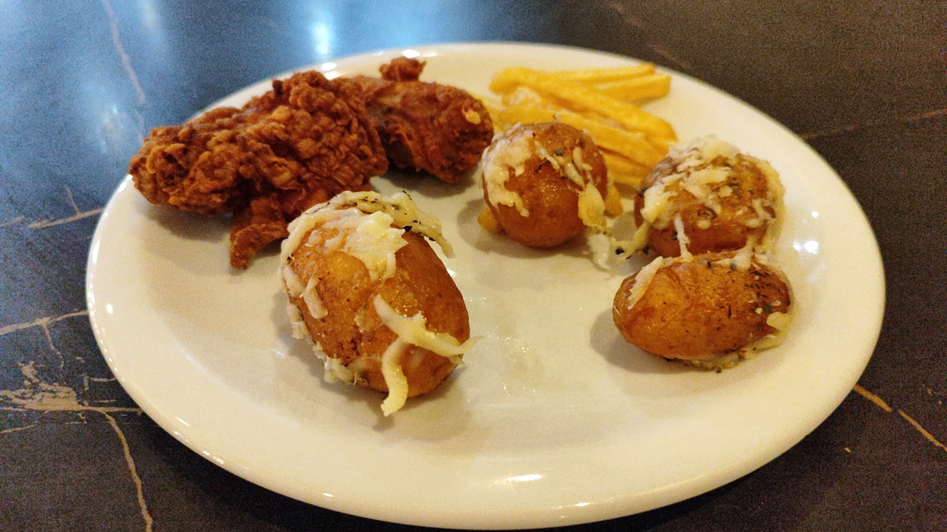 Boa diversidade de pizzas salgadas e doces, contudo sem nenhuma identificação. Das diversas que provei, estavam muito boas. Sushi com aparecência estranha, não convidativo. As batatas fritas estavam com aparência murcha. Alguns outros itens básicos de Buffet Refrigerante à vontade nas máquinas.