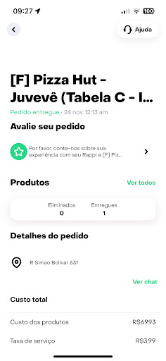 Read moreNo dia 14/05 fiz um pedido nessa loja pelo Ifood. Depois de esperar 1h20 pela minha pizza, recebi a notificação de que meu pedido tinha sido pego pelo motoboy e estava a caminho. 5 minutos depois recebi uma notificação que meu pedido tinha sido cancelado pelo motoboy (?) e que eu receberia o estorno do pedido. O problema é que nesse ponto já era 22h20, já tinha esperado mais de uma hora pelo meu pedido e outras pizzarias não aceitavam mais pedidos. Liguei para o Pizza Hut para ver como eles poderiam me amparar nesse caso e fui informada que "eu teria que entrar em contato com o Ifood sobre o extorno, mas como é erro do Ifood, a loja não iria fazer nada porque é um motoboy terceiro e não é nossa culpa." Não moveram um dedo pra me ajudar nessa situação, não se ofereceram a entregar outra pizza, simplesmente jogaram toda a culpa no Ifood e eu e minha família que ficássemos sem nada. Nunca mais iremos pedir nessa pizzaria que não faz a mínima questão em manter seus clientes fiéis, nunca vi tanto descaso com o consumidor. Pena que não tem como...