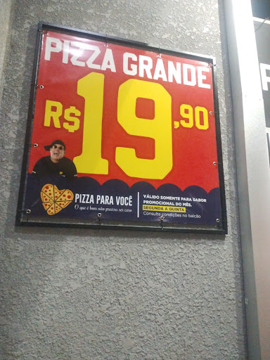 Read moreTem um placa enorme na entrada onde o valor está de 19,90 aí quando você pede mostran um lugar minúsculo escrito que é somente um sabor aleatório que eles escolhem que é horrível. Ou seja você não paga o valor que está no cartaz e a pizza não tem um qualidade boa , pelo preço ainda compensa só não gostei dessa...