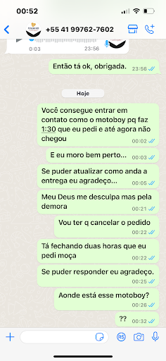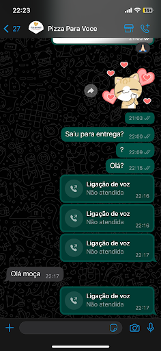 Read moreDecepcionante, pois a alguns dias , pedi uma pizza, mandei a msg fiz o pedido, a moça falou 25 min ta pronta...em menos de 5 minutos, estava pronta, ? Como se assa um pizza em 5 min ? Falei olha infelizmente vou querer outra,pois em outros momentos, minha pizza demorava 30 à 40 min. Não é possível assar uma pizza em 5 min. A moça falou q não era possível, então pedi pra cancelar,mais como já havia pago através do pix , eles me fizeram a outra pizza , em 20 min. Blz passou . Já dia 1 de junho de 23 , fui fazer outro pedido , não consegui ,peguei o celular do meu marido e consegui ,aí percebi q eles haviam me bloqueado ! Triste pois há tempos sou cliente, e o pior ,foi q elas disseram q o DONO mandou me bloquear ! Espero que mudem ,pois não vou parar de pedir ,sou consumidora , é um descaso pois todos têm direitos de consumir !!!!