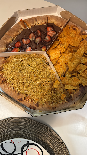 Quando abri a pizza em casa percebi que veio pouca pizza doce. Entrei em contato com a loja, ficaram de me mandar uma broto de creme de avela com morango