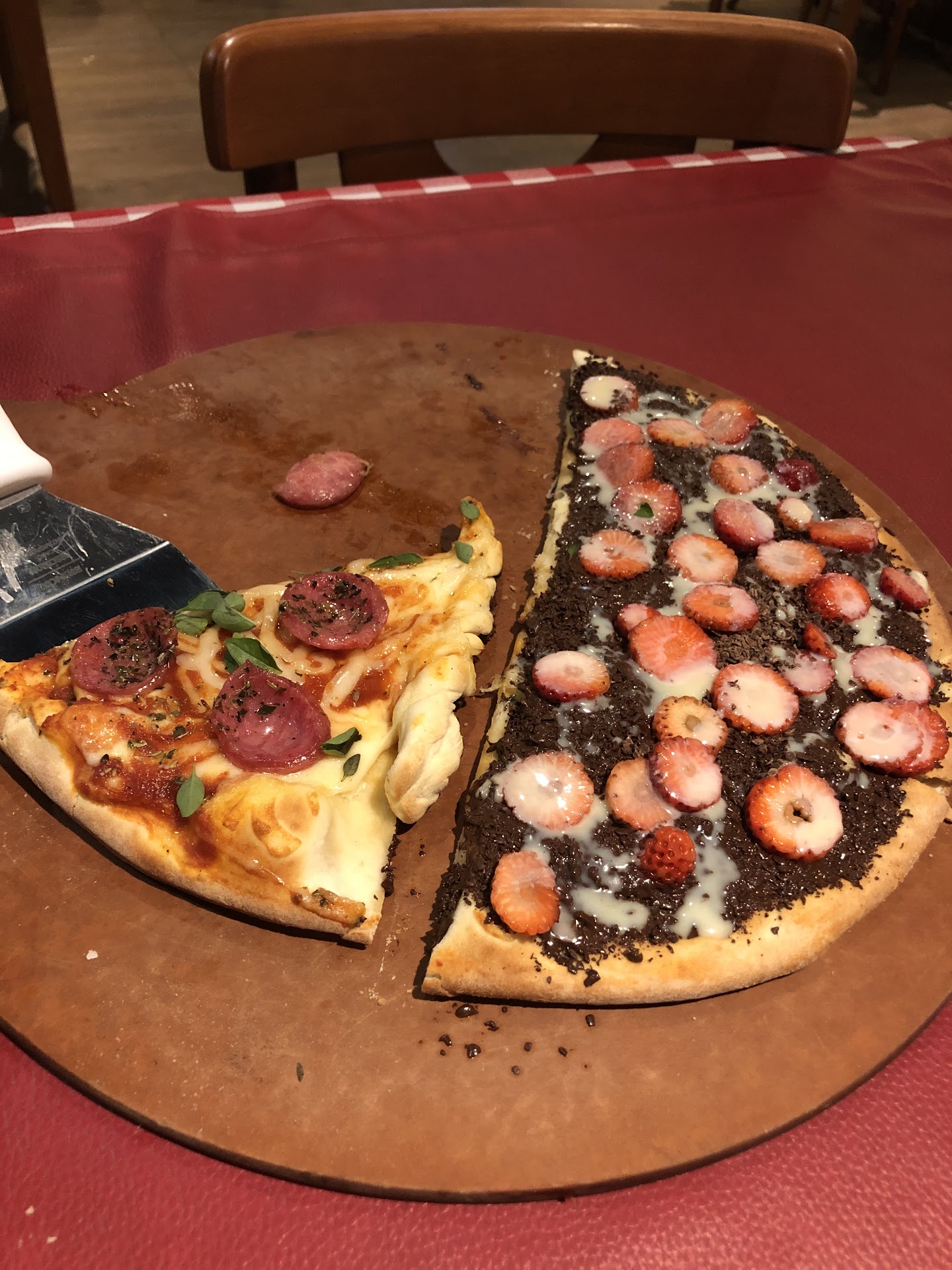 Read morePrimeiramente fomos bem recebidos. Não havia lugar disponível, mas foram muito educados e providenciaram. Há um bom atendimento à mesa. Não houve demora no que pedimos, uma pizza família de dois sabores. Até a nossa saída, houve um bom atendimento. Entretanto, pedimos pizza de camarão e sentimos o camarão cru. Questionei e o atendente falou que eles só dão "um susto" nele. Disse que o susto foi grande pois eles morreram crus... enfim. Não conseguimos comer a pizza e não houve alternativa. 99,00 jogados fora. Pedimos então uma sobremesa que veio um pequeno bolinho quente acompanhado de uma bola de sorvete. Aí, outro problema. O sorvete era pura água com açúcar. Enfim. A experiência foi decepcionante e não pretendemos retornar. Estacionamento aos...
