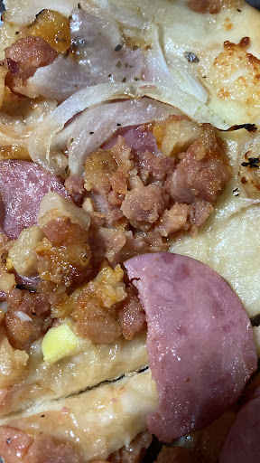 Read moreJá comprei diversas vezes, mas infelizmente está cada dia pior. Hoje adquiri uma grande. De verdade, deve ter sido um estagiário que a preparou. Solicitei sem cebola e alguns pedaços da pizza vieram com bastante cebola. Fiz uma reclamação via watts e a resposta que recebi foi: "agradecemos o feedback, será repassado para a equipe". E o cliente fica como? Nem um pedido de desculpas sequer. É obrigado a ficar com um produto em total desacordo com que solicitou? O corte da pizza também está bizarro, partes triangulares e partes quadradas. Enviei a foto também para a empresa, a resposta? "Você gostaria de fazer uma observação sobre o pedido ou dar sua opinião"? Lamentável o descaso com o consumidor. Perderam um cliente assíduo, pela falta absoluta de consideração com o indivíduo. Reflitam e vejam se realmente estão no ramo certo, pois o ser humano, minimamente, tem o direito de ser tratado com respeito. Não comprem, a não ser que gostem de ser tratados como um "número indiferente". Ah, os ingredientes também, devem ter acabado, pois a azeitona estava presente apenas em dois pedaços da pizza, nos demais nada, apenas cebola,...