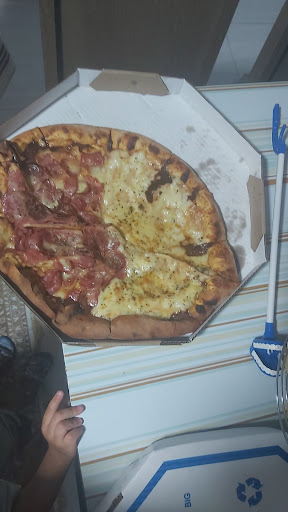 Meu filho de 3 anos pediu pizza porque estava com vontade, a primeira e última vez que pedimos nessa pizzaria. Quando chegou a pizza, abrimos, se deparamos com ela desse jeito da foto e ainda esqueceram de mandar a coca. Ligamos e falamos do ocorrido a moça atendeu e disse q em 20 min mandaria outra. A pizza da foto chegou era 21:24, agr estou reclamando as 23:13 sem a pizza p comer. Não comemos a pizza da foto, pagamos caro pra comer bem e não comida pra porco! Estou esperando o retorno da pizzaria que até agr não atende, NÃO RECOMENDO! Pior pizzaria q já pedimos p comer