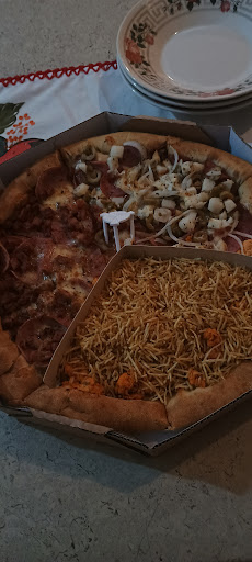 Read moreSempre peço metade calabresa acebolada ou caliente e metade 3 queijos, a pizza é uma delícia, quando é calabresa acebolada, creio que colocam azeite, fica perfeito, nao deixando ficar tanto a calabresa quanto a cebola ressecada, quando é calabresa caliente, vem bem apimentada, e também acredito que é colocado azeite, pois fica muito saboroso, e a de queijo bem cremoso também, estão de parabéns, até o momento sem...