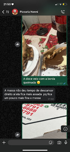 Read moreComprei algumas vezes há uns meses atrás, e sempre vinha com borda queimada, e se pedisse borda com chocolate, em pizza salgada, sempre veio mal fechada e com as bordas derramadas em toda a pizza! Então havia parado de comprar por esse motivo, porém ontem quarta (18/06/2025) resolvi dar mais uma chance ver se tinham melhorado depois de um bom tempo, comprei novamente e pedi a borda de chocolate kkk pra quê! Novamente uma decepção! Bordas queimadas e chocolate espalhado na pizza por cima da cebola e presunto! Resolvi falar com a atendente, que tentou argumentar cheia de balela .. dizendo que o pizzaiolo está em treinamento , o que é mentira pois esse desleixo acontece há tempos! Borda queimada e mal fechada .. atendente mal capacitada e mentirosa. Nem discuti, perderam cliente. Nunca mais vou pedir dessa loja, muito menos recomendo...