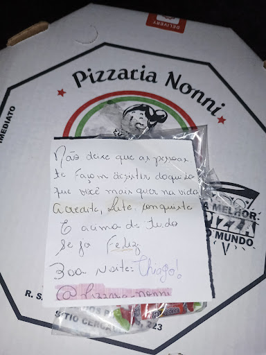 Infelizmente, vim aqui editar minha avaliação. Durante muito tempo, eu e meu namorado pedimos pizza somente na Nonni, pelo menos duas vezes no mês. Desde a primeira vez que provei, virou minha pizzaria preferida, mas de uns tempos pra cá o padrão caiu muito. Hoje pedimos uma de palmito, que sempre pedimos, e veio sem gosto nenhum (meu namorado disse que tava com gosto de velho, eu só não senti sabor mesmo), a de champignon que sempre foi a minha preferida por ser bem temperada e caprichada, veio sem gosto e com pouco cogumelo, a massa com gosto diferente e da última vez que pedimos foi a mesma coisa. Além disso, o valor subiu, e estaria tudo bem se continuasse com a mesma qualidade, só que não foi o caso. O valor subiu e a qualidade baixou :( Não sei se mudou a gerência, o dono ou o que, mas espero que voltem a fazer as pizzaria perfeitas que faziam antes. Vamos ficar um tempo sem pedir, pq tem sido frustrante.