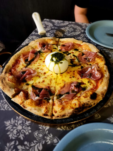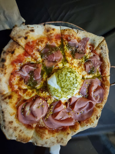 Read moreVisitamos em uma noite de sábado e estava praticamente vazia. É um ambiente pequeno (cabem em torno de 20 a 25 pessoas sentadas) e rústico (há uma mesa redonda interna, com cadeiras mais confortáveis, e quatro mesas no deck, com bancos de madeira). O atendimento foi bom e o pedido ficou pronto rapidamente. Pedimos uma pizza grande, metade Bologna Stracciatella (na minha opinião poderia ter um pouco mais de pistache, pois o sabor foi imperceptível) e metade Burrata e Parma (excelente burrata). A pizza custou 99 reais. A massa eu achei razoável. Há algumas opções de vinho, mas o que escolhemos não estava na temperatura ideal. Não há estacionamento, mas é fácil de...
