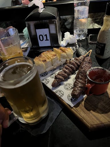 COMIDA: Tinha um molho de pimenta MUITO gostoso. A porção de batata frita com bacon e cheddar é boa, batata bem macia por dentro e crocante por fora. O bacon vem em fatias, bem diferente das porções que normalmente vem com ele picadinho. Achei bom. A porção de polenta frita com queijo também era uma delícia. O espetinho de alcatra tinha alguns pedacinhos meio duros, mas era bom. O sanduíche é bem servido e bem recheado, tem 25 cm e dá tranquilamente para dividir em 2 pessoas. Foi pedido o pulled pork, ele tem um pouco de barbecue em excesso que rouba o sabor da carne de porco. Mas é bom.