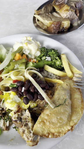 O lugar funciona de uma forma bastante curiosa: paga-se R$ 40,00 por pessoa, e isso dá direito a acesso livre ao buffet, que conta com o básico, como arroz, feijão, macarrão, algumas poucas opções de carne e algumas saladas. A costela, que é o prato chefe do lugar, paga-se à parte por quilo.