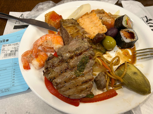 Read moreBufê por quilo com grande variedade de saladas, sushis, pratos quentes, churrascos, massas, Camarões e sobremesas, umas 6, etc. Tem para todos os gostos. E são bem preparados, deliciosos e saborosos. Atendimento muito bom. Por ter uma variedade a um custo justo (R$109,90/kg em domingo feriado 07/09/25) o ambiente fica bem cheio. Ficamos na fila do bufe uns 8 minutos, mas não precisamos ficar esperando por mesa. São 2 andares c várias mesas. Tem estacionamento gratuito, acho que em 4 estacionamentos e bem perto do restaurante, dois do lado do restaurante e outros 2 do outro lado da rua. Não tinha fila no...