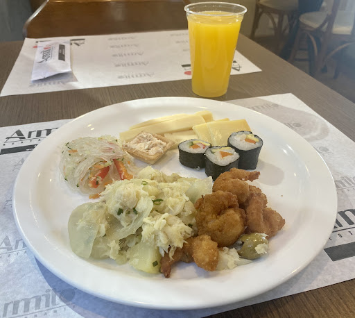 Read moreBuffet por peso no almoço. Comida muito boa, tem carnes grelhadas na hora (alcatra, contra filé, linguiça, coração de frango, filé de frango, filé de peixe). Por ser de uma família de descendentes de japoneses costuma ter uma ou outra opção do tipo (alguns sushis de legumes, macarrão de arroz e pad thai). Atendimento excelente. Tem amplo estacionamento. Abre todos os dias, até domingos e muitas vezes nos feriados. Nos finais de semana e feriados o preço é mais caro porque tem mais opções diferenciadas (ex.: costela, bacalhau, camarão). Também servem cortesias todos os dias (café, chá,...