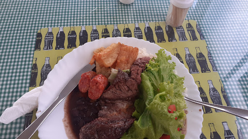 adoramos a comida. ( Anteriormente) Atualização: Dois anos depois de pegar a comida deles pelo menos quatro vezes por semana nós deparamos com grosseria gratuita e falta de boa vontade. A carne assada, duríssima por sinal, tem que ser consumida um pedaço de cada tipo não sendo possível a substituição. Exemplo. Não como porco. Eu teria direito a 1 de cada tipo então 3 tipos. Peço dois pedaços de frango e o proprietário grosseiramente me diz que 1 pedaço de cada tipo. Então no meu caso 2. A marmita anteriormente era paga na lateral. Agora é preciso ficar 25 minutos na fila pra pagar então vc chega com a comida fria. Aparentemente eles estão podendo...