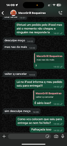 Read morePior decisão desse dia foi ter pedido a marmita da Maxx Grill, a comida deles é ok, mas o atendimento é péssimo!!! Mandei mensagem pelo WhatsApp pedindo o cardápio, que me foi enviado, enviei o pedido pelo chat do WhatsApp e precisei descobrir sozinha que eles não recebem pedido no WhatsApp, só percebi pq não recebi nenhuma mensagem de confirmação ou previsão de entre e achei estranho. Após entender a forma correta de pedir, segui para o site de pedidos e realizei o pedido, previsão de entrega em 50 minutos. Quando deu 1 hora e 30 de espera enviei mensagem perguntando minha previsão de entrega, sem retorno, tentei ligar pro telefone de suporte que eles deixam no site de pedido, liguei várias vezes e nada, liguei pelo WhatsApp e nada. Após uns 5 minutos me retornaram pelo WhatsApp dizendo que meu pedido estava saindo para a entrega, após isso, mais 20 minutos de espera. A comida é ok, mas nada que me faça comprar novamente, considerando o inconveniente da...