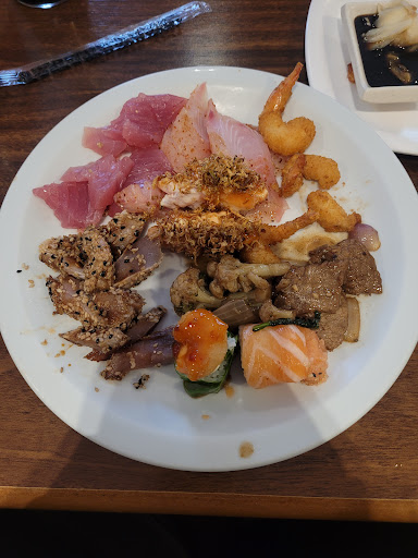 Possui uma parte do buffet dedicada às saladas e alguns pratos frios. Uma outra parte inteiramente para os sushis e outra para os pratos quentes.