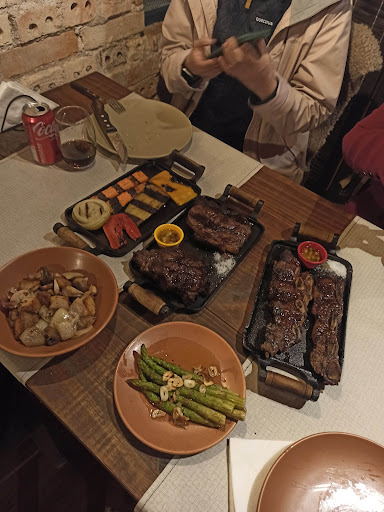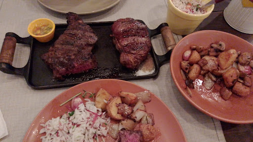Comida: Estávamos em 4, pedimos os camarões, o T-bone de porco Moura e um bife de chorizo, além dos acompanhamentos, purê de batata salsa, pão de alho, dadinhos de polenta e queijo coalho com melado. Tudo estava muito saboroso e bem feito, as porções são individuais e custam entre 60 a 80 reais, mas servem muito bem! Saímos muito satisfeitos.