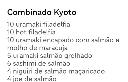 Read moreTOMEM CUIDADO COM TUDO!!! Alerta de propaganda enganosa. Pedimos um combo Kyoto e 1 Coca-zero, pelo iFood da minha esposa. O pedido chegou um pouco atrasado, nada muito exagerado mas, se pensarmos que moramos há 5 minutos à pé do local, talvez seja muito.