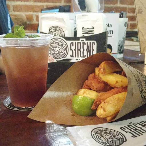 Read moreO Sirène tem um cardápio básico mas que agrada a todos. A batata rústica é sempre uma boa pedida, ainda mais quando acompanhada do peixe frito e dos molhos que vem junto, em especial a maionese da casa. É ideal para o início de noite ou para um happy hour rápido, principalmente pela carta variada de cervejas e o preço justo. O local é limpo e tem um visual pós-industrial com materiais rústicos da casinha eclética em que se situa, com decoração marítima e muitos tons quentes de madeira com a sobriedade do preto. O banheiro misto é um local a parte, recheado de frases e dizeres que fazem cada subida de escada valer a pena. O local enche rápido e as vezes você enfrenta uma fila ou não consegue lugar para degustar o lanche ou uma bera. A equipe é agil e bem treinada, sempre prestativa e atenta. Quando o bar está cheio faz falta um segundo caixa e em certos momentos o som no interior...