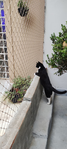 Quanto ao recinto dos gatos, embora limpo e organizado, o dia e o local estavam extremamente quentes e os fatos bastante sonolentos. Achei bastante inadequado que não houvesse um sistema de conforto térmico já que os mesmos ficam restritos aquele espaço fechado.