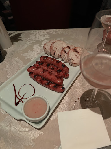 Nesta vez começamos nosso jantar com uma entrada, onde pedimos uma salsicha na brasa, aonde a foto mostrava um prato impecável… e quando chega a mesa é a mais pura decepção, quando vemos o prato no cardápio on-line ele parece até o prato da linguiça na brasa do restaurante madeiro e quando chega a mesa vem apenas algumas linguiças jogadas ao centro do prato com um molho de abacaxi duvidoso de acidez excêntrica e incomparável com nada mais, além disso acompanhado de pães, se posso dizer, pães franceses porcamente tostados na brasa. Passando a decepção com a entrada, solicitei ao garçom um Bife Wellington, o mesmo que avistei no site quando fui fazer a reserva e visualizei o menu antes de sair para o restaurante, estava desejando este prato e com grande entusiasmo… novamente mais uma decepção… um Bife Wellington com a pior massa folhada que já degustei em minha vida, além da pasta envolta na carne de sabor intrigante e difícil de tragar; este prato acompanhava um nhoque de queijo gouda, ou posso dizer “tipo gouda”, o qual que mais tinha sabor de mussarela…