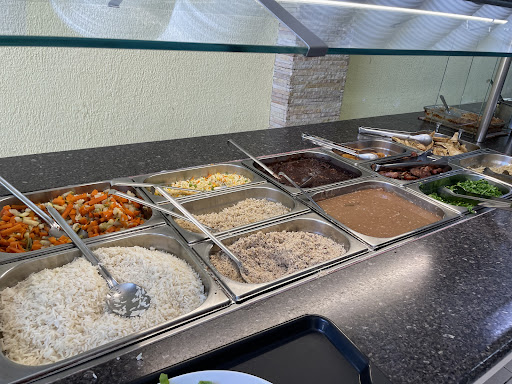 O local é grande e simples, tem bastante mesas, ambiente interno, mezanino, e uma área tipo jardim de inverno fechada e não possui estacionamento. Mobiliário comum, louças boas e integras. O buffet tem uma grande variedade de saladas e pratos quentes (tinha sushi também), a comida é saborosa, mas nada de especial. Disponibilizam o serviço de buffet por kg ou por pessoa, achei os valores acessíveis comparados com demais estabelecimentos semelhantes. Pedi um suco de laranja natural feito na hora que estava muito bom, porém houve bastante demora na entrega, eu já estava finalizando meu prato quando a bebida chegou. Possuem também um pequeno buffet de sobremesas. O atendimento é bom, equipe simpática e educada, mas nota-se bastante informalidade (talvez seja empresa familiar). Fui no domingo perto das 12h e o local estava bastante vazio.