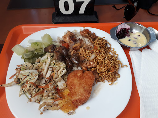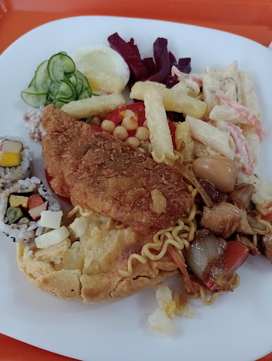 Restaurante self-service com um buffet variado de saladas, proteínas e carboidratos. O Restaurante é de uma família de descendentes de japoneses, então quase tudo tem um toque oriental, seja na salada com shoyo, no yakisoba e frango xadrez, sempre presentes no buffet. Também tem sushi (que eu não como) e tudo no mesmo preço, então tem gente que aproveita e enche o prato. Em algumas noites tem jantares só com sushi, mas como não me interesso, nem sei como funciona. A sobremesa é cortesia (e é boa). O salão tem 2 ambientes, um ao nível do buffet e outro um pouco mais elevado (cerca de 3 degraus). Os preços são razoáveis, não sendo o mais barato da cidade, mas também não é um absurdo se comparado a locais semelhantes. Ao final da refeição, se você devolver a bandeja com o prato, ganha um biscoito da sorte...